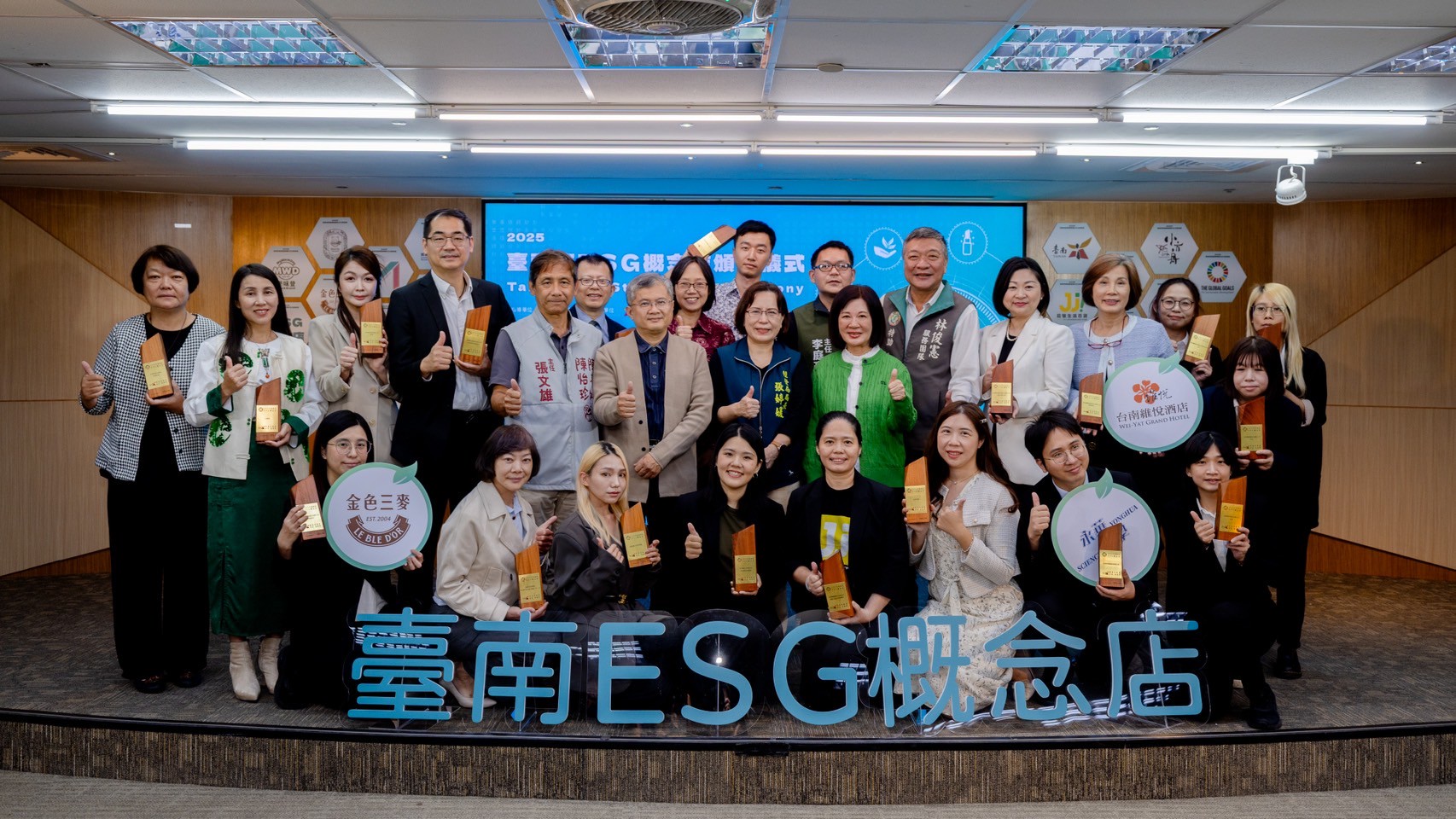 台南市政府今(20)日在永華市政中心舉行第三屆「台南市ESG概念店認證」頒獎典禮,由經濟發展局長張婷媛代表市長黃偉哲頒獎。這屆共有19個品牌、22家卓越門市通過認證,累計已達43個品牌、53家店家獲選,展現台南市在推動永續商業的厚實基礎與持續成長動能。